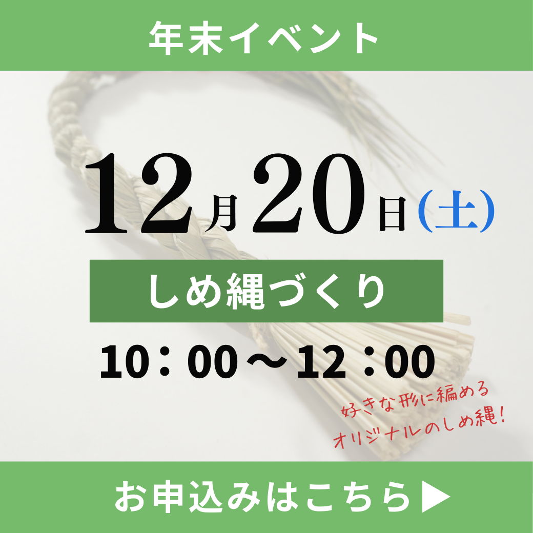 ご自分の好きな形に編んで作るオリジナルのしめ縄かざり🎍!\ 縁起ものとして、おうちや玄関に飾ったり! / 時間:10:00~12:00会場:三浦太鼓店参加費:1つ 2,500円(税込)